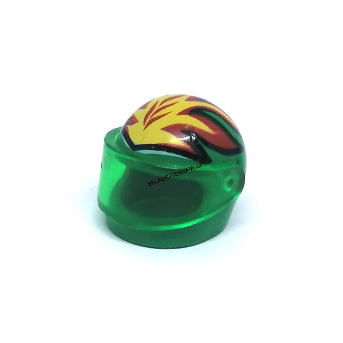 - F815 LEGO HRANÁ HELMA ZELENÁ PLAMENY PRŮHLEDNÉ HLEDÍ