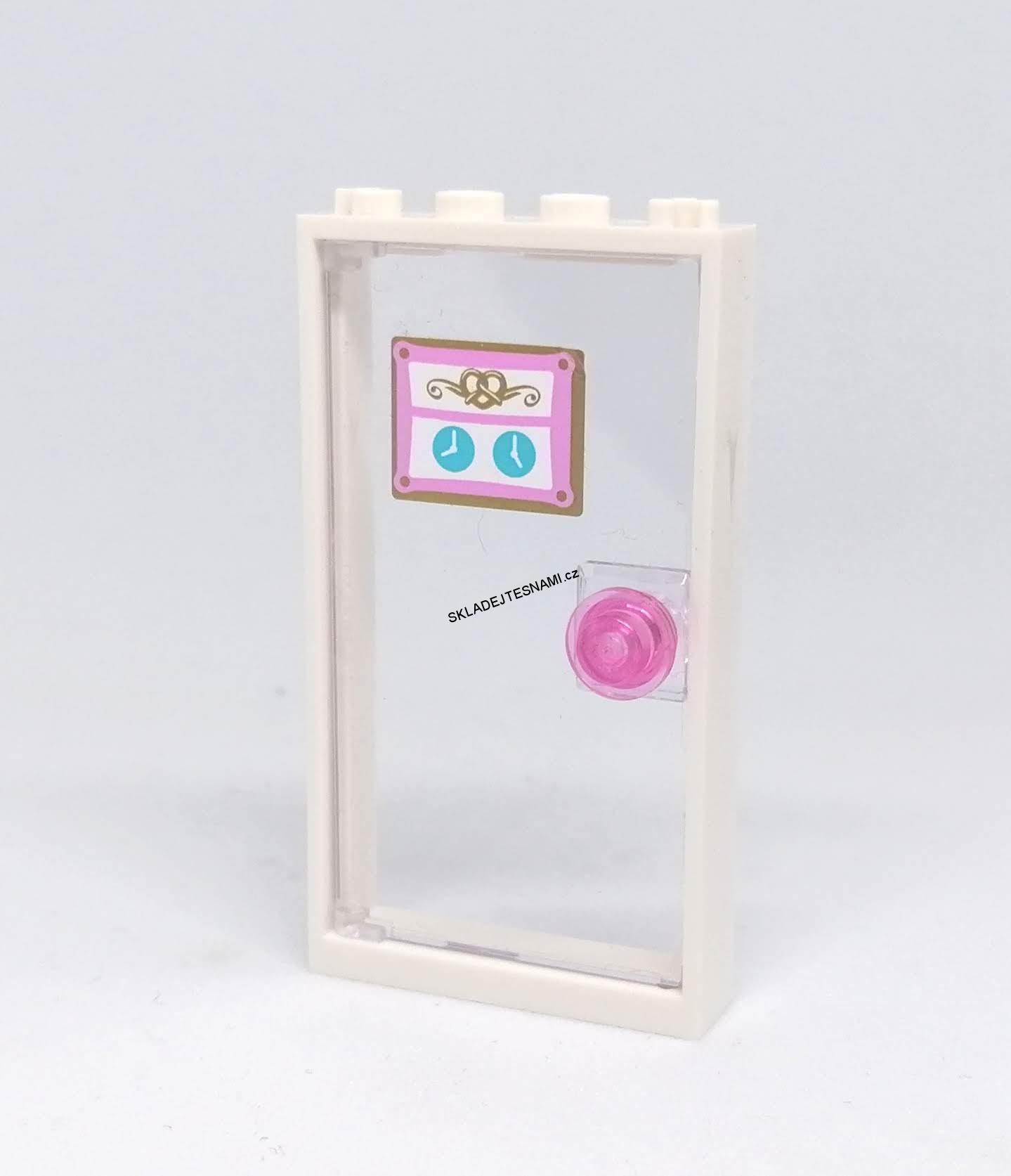 LH2222 LEGO HRANÝ DÍL DVEŘE BÍLÝ RÁM ČIRÉ SKLO POLEP S OTVÍRACÍ DOBOU