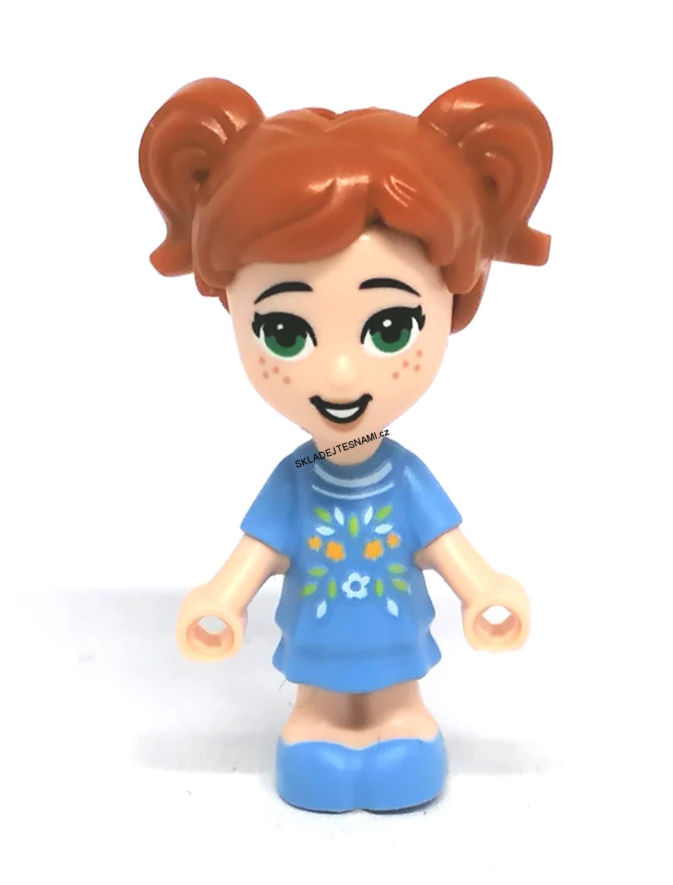 - LN2337 LEGO NOVÁ MINIFIGURKA FRIENDS DÍTĚ HOLČIČKA MODRÉ ŠATY REZAVÉ VLASY S CULÍKY