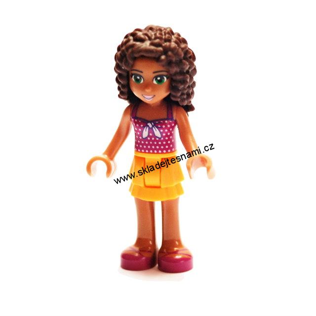 - LN918 LEGO NOVÁ MINIFIGURKA FRIENDS VLNITÉ VLASY ORANŽOVÁ SUKNĚ