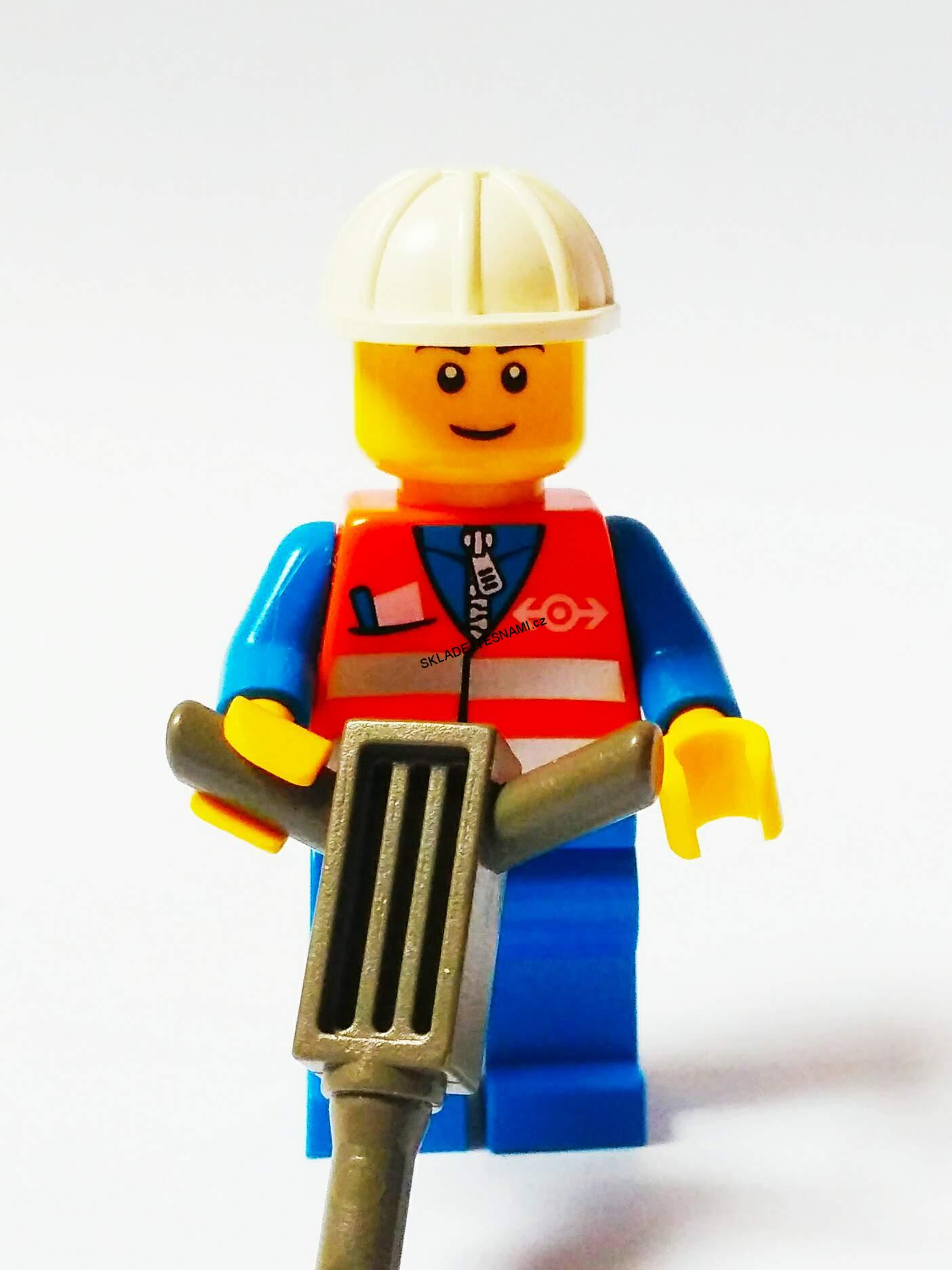 Lh543 LEGO HRANÁ MINIFIGURKA DĚLNÍK SE SBÍJEČKOUSkladem50 Kč/ ks