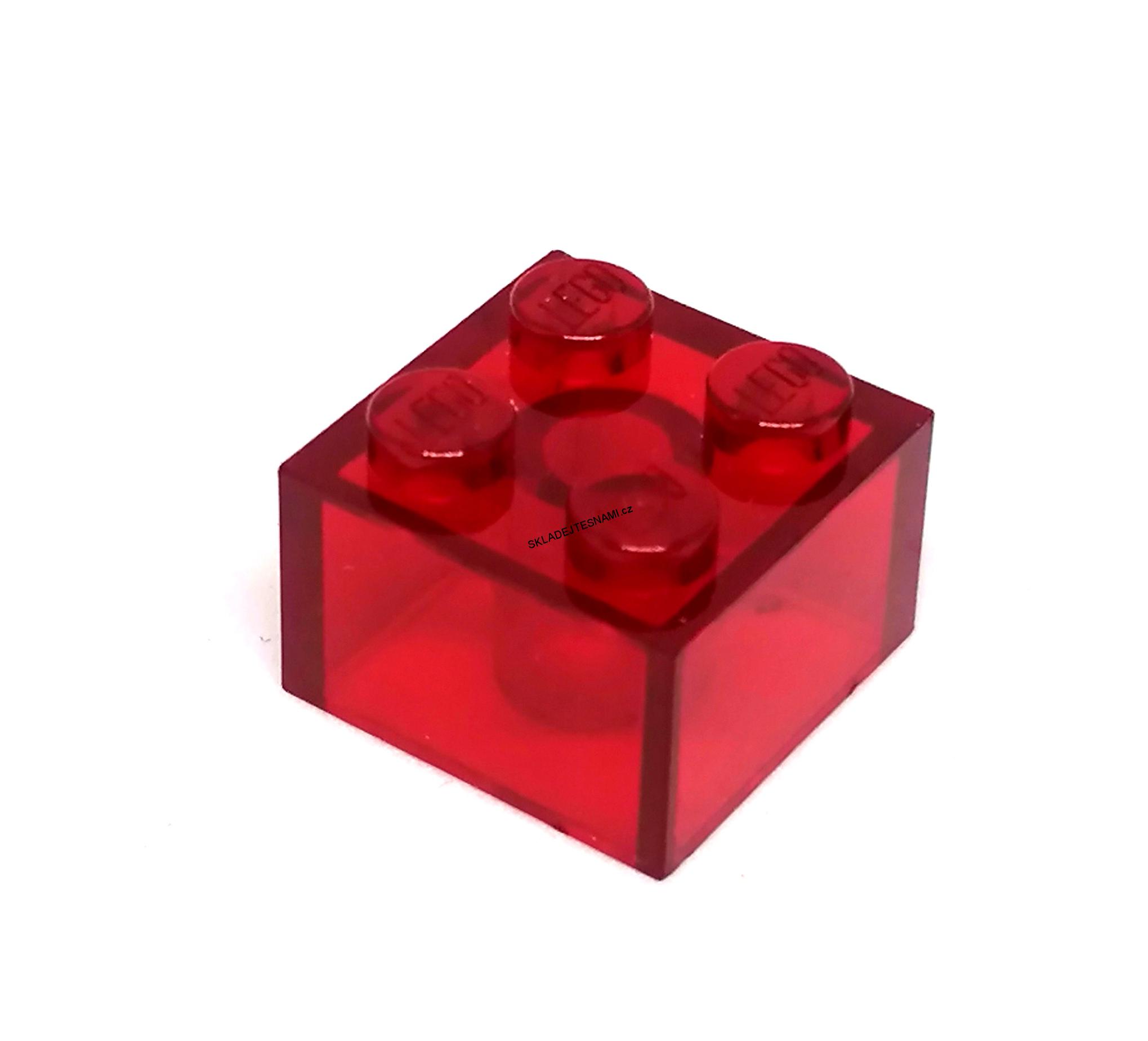 - LH1150 LEGO HRANÁ PRŮHLEDNÁ KOSTKA 2X2 NOPKY ČERVENÁ
